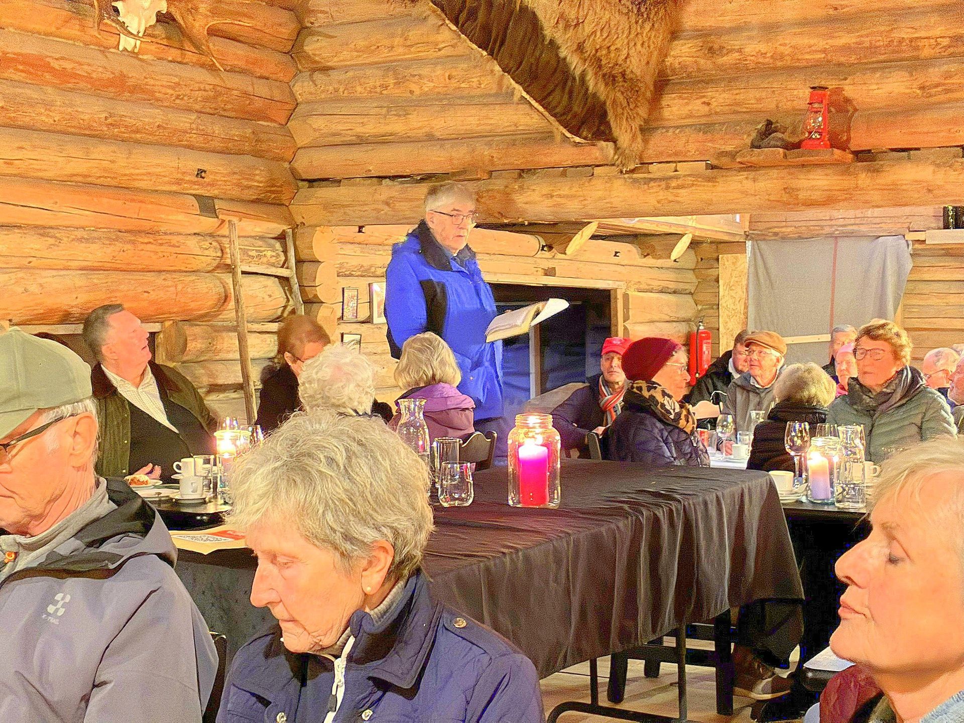 Under lunsjen foredro Arne Erik Fønhus om forfatteren Mikkjel Fønhus, med vekt på hans liv, virke og skildringer av norsk natur og dyreliv. Ikke langt unna hadde vi passert gårdene Øvre og Nedre Fønhus, der Mikkjel Fønhus' far kom fra Øvre Fønhus.