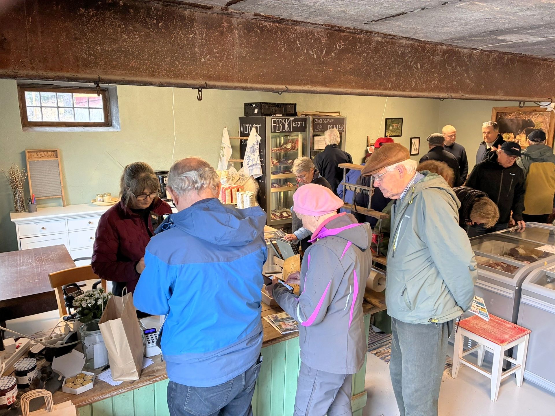 Etterpå "stormet" turfølget ut for å saumfare det gards-butikken hadde å by på.