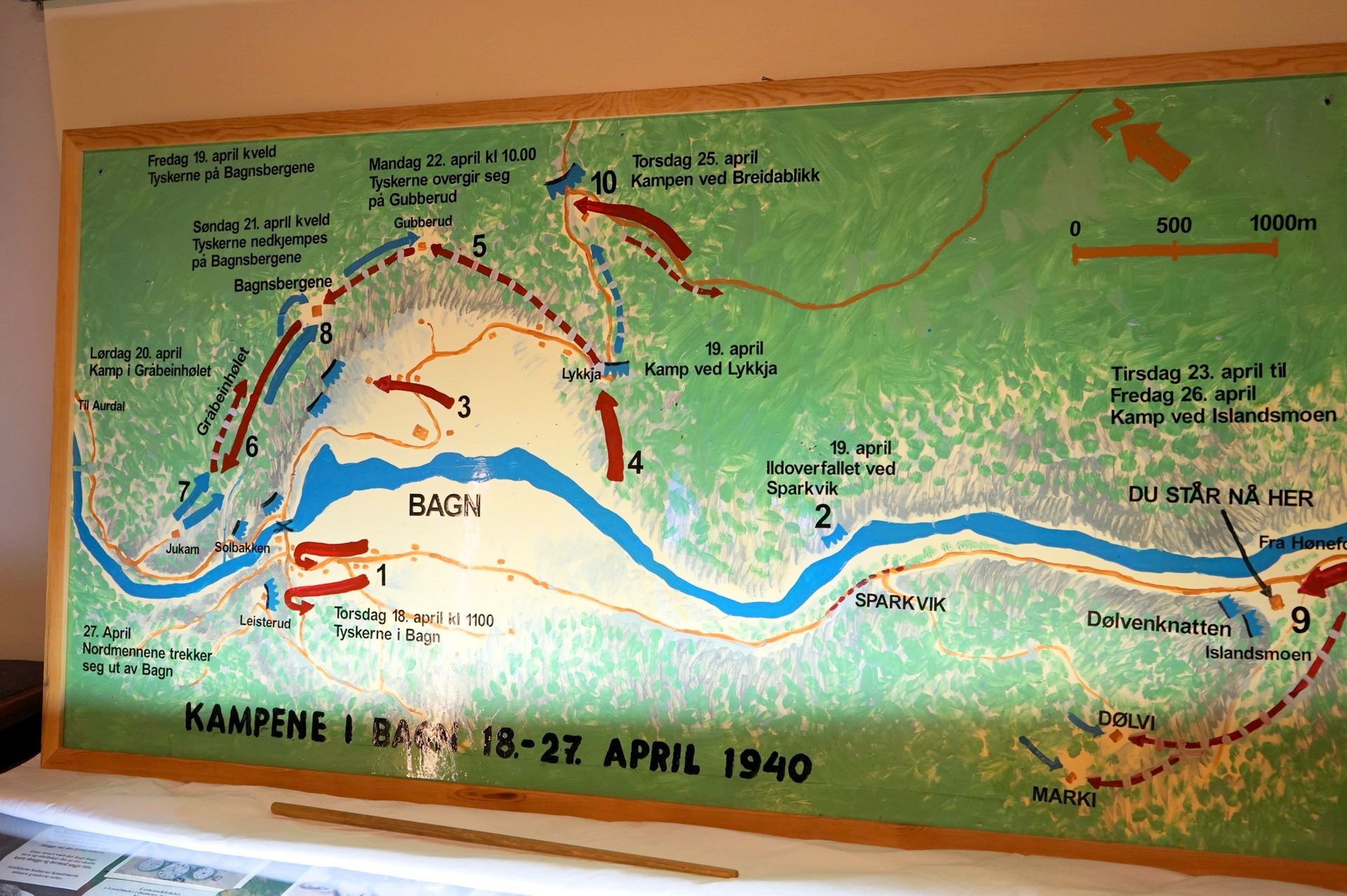 Turen startet med besøk på Bagn Bygdesamling, der deltakerne fikk en orientering om de dramatiske krigshendelsene i området nøyaktig (på dagen) 86 år etter at tyskerne ankom Bagn i 1940.